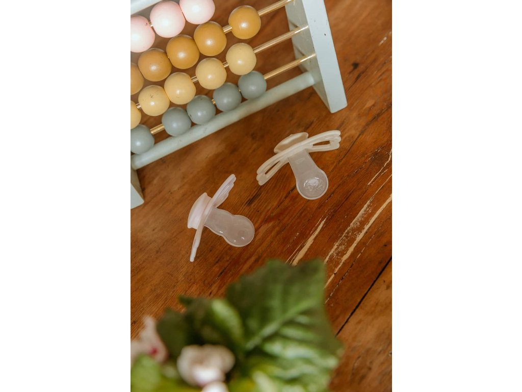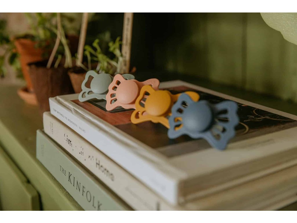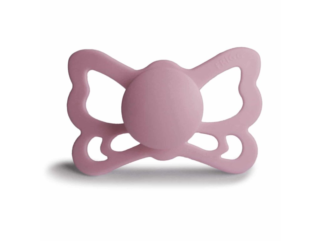 Tvar cumlíka FRIGG Butterfly pripomína motýľa. Štít so zvlnenými okrajmi má veľké vzduchové otvory pre väčšiu bezpečnosť a jeho okrúhly stred krásne zvýrazňuje eleganciu cumlíka.