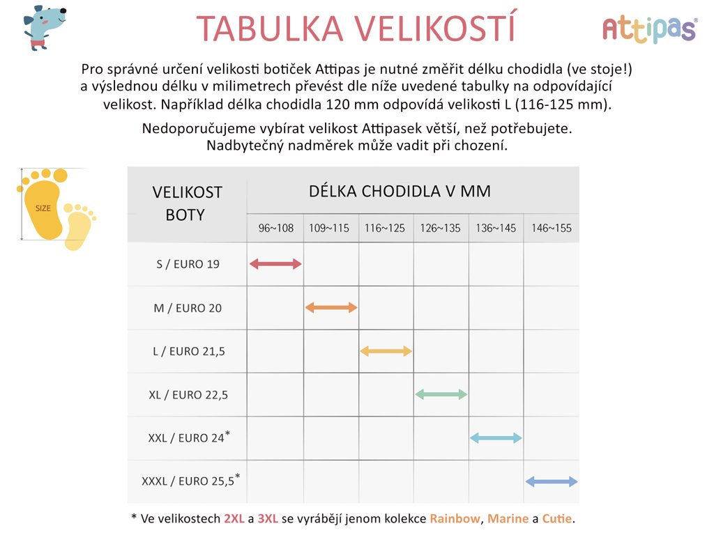Obuv Attipas je vhodná pre deti od 6 mesiacov do 3 rokov. Topánočky sú určené ako pre deti, ktoré ešte len začínajú chodiť, tak aj pre dobrých chodcov.