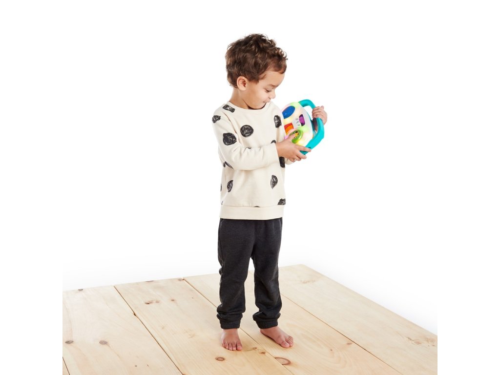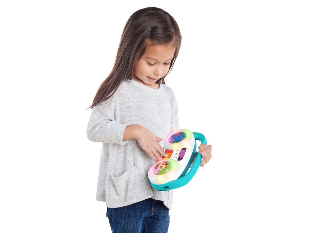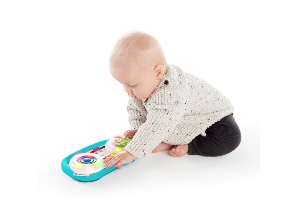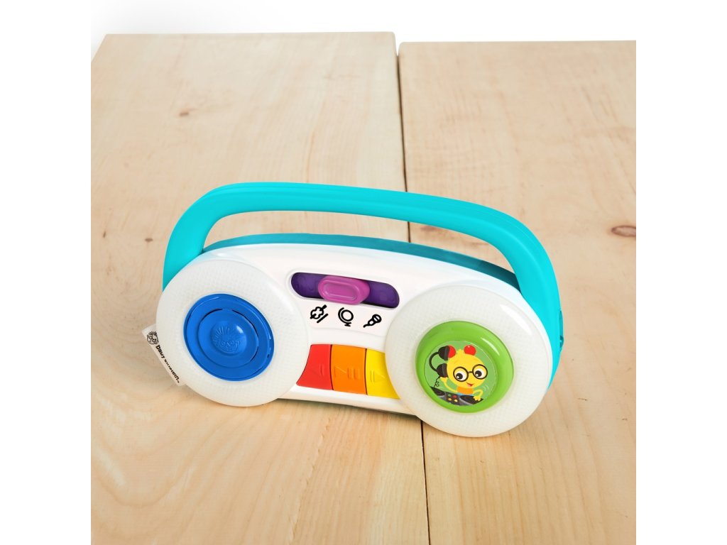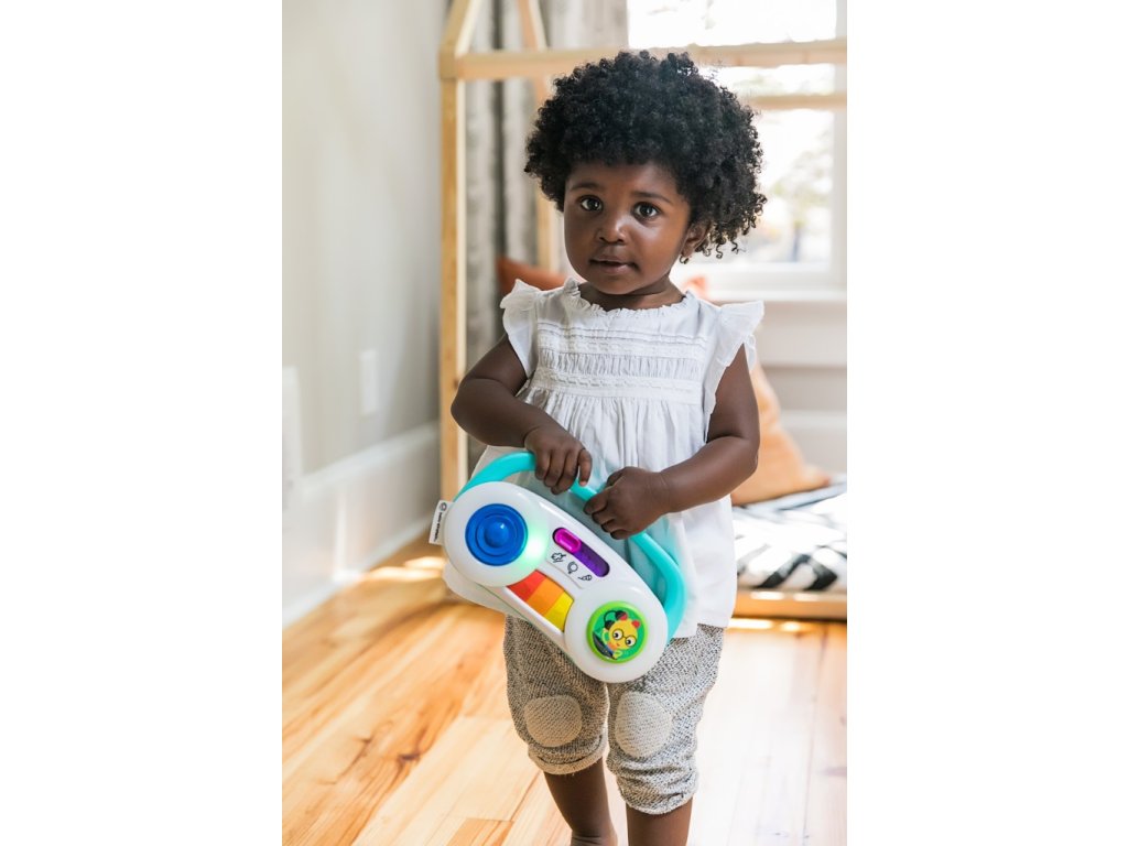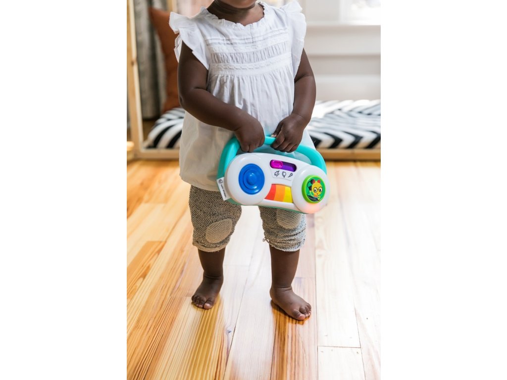 Hudobná hračka Toddler Jams od Baby Einstein umožní dieťaťu pohyb a tanec na 30 rôznych melódií. Zoznámte sa so svetom hudby s výberom od klasických piesní cez popovú hudbu až po svetové žánre. Táto hračka, ktorá je vhodná aj na cesty má ľahko uchopiteľnú rukoväť a koncert môže začať. Farebná svetelná šou hrá do rytmu hudby a podporuje rozvoj jemnej motoriky, keď dieťa tancuje do rytmu a prepína si hudbu. Pomocou jasných tlačidiel môže skladbu pozastaviť, preskočiť, prehrať alebo ju znovu namiešať. Tento hudobný prehrávač bude úžasnou hračkou nie len pre batoľatá, ktorá prebudí celoživotnú lásku k hudbe.