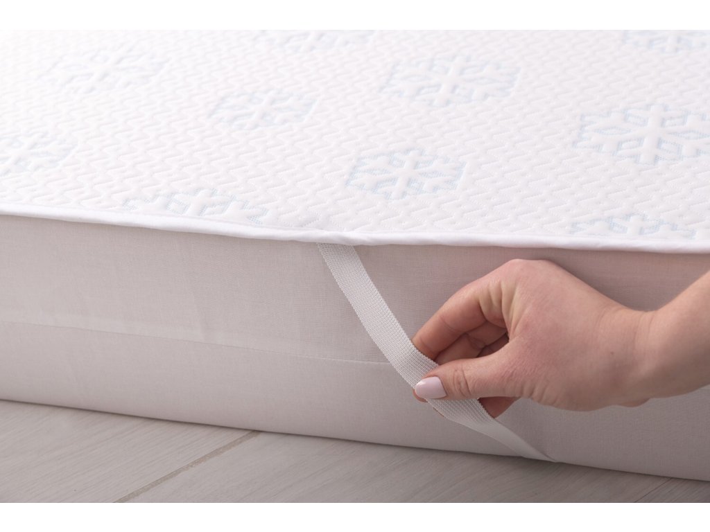 Gumy v rohoch chrániča umožňujú ľahké a pevné uchytenie na matraci a to bez posúvania behom spánku. Chránič je vhodný pre matrace rôznej výšky.