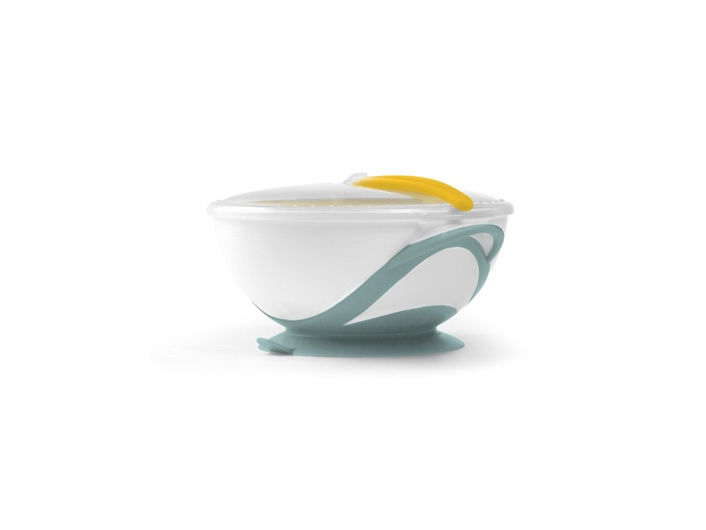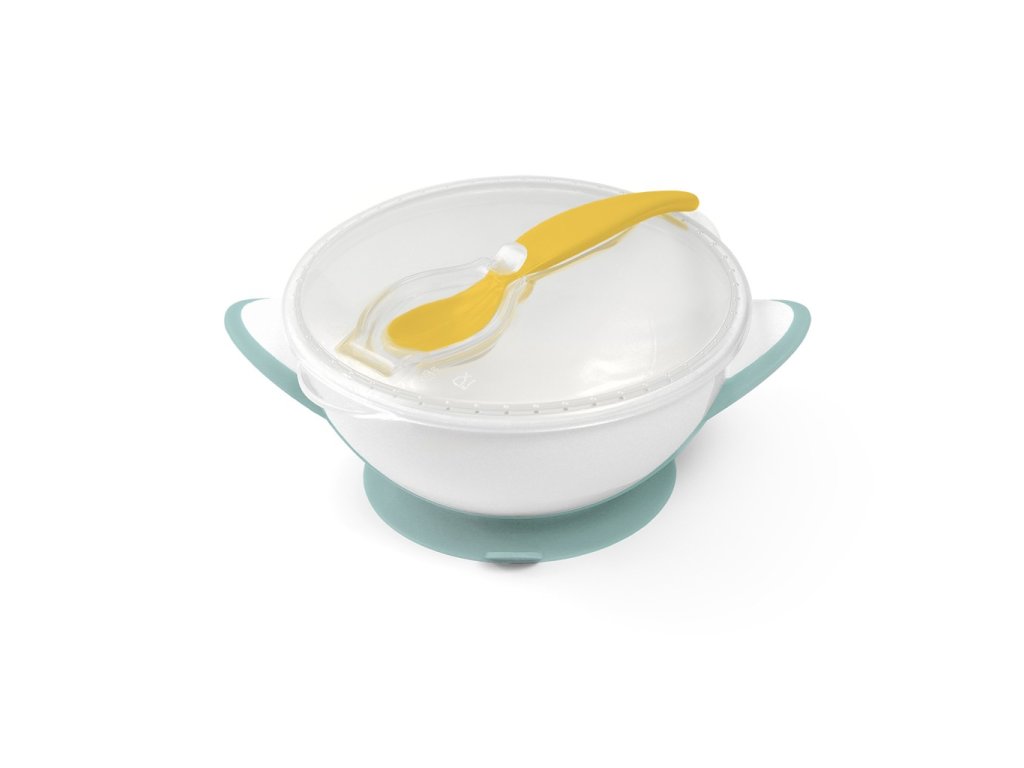BABYONO Miska uzatvárateľná s prísavkou a lyžičkou 300 ml zeleno/žltá