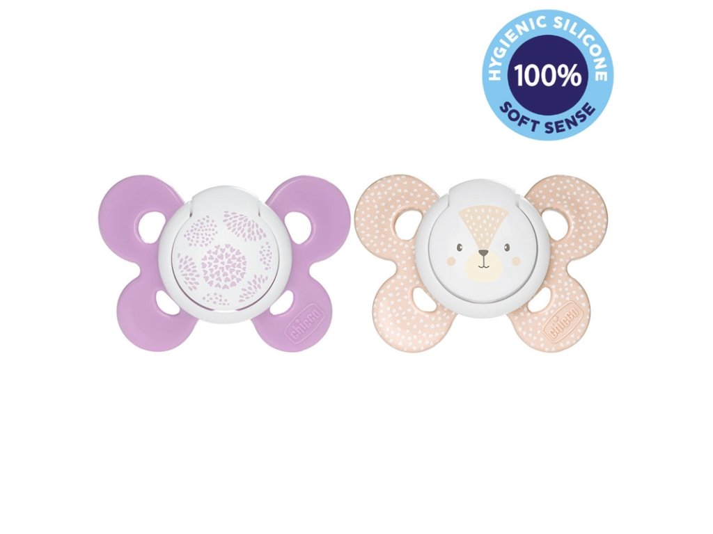 CHICCO Cumlík Physio Comfort silikónový 6-16m dievča - bodky/líška 2 ks