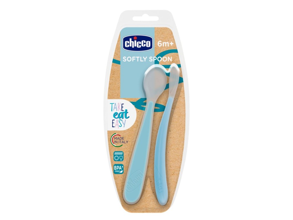CHICCO Lyžička silikónová 2 ks modrá 6m+