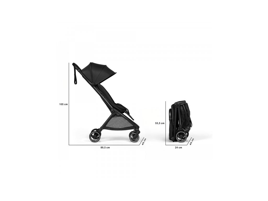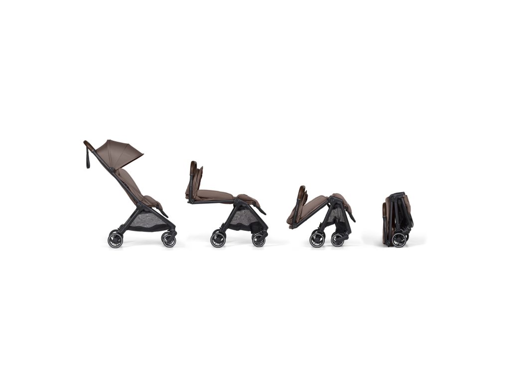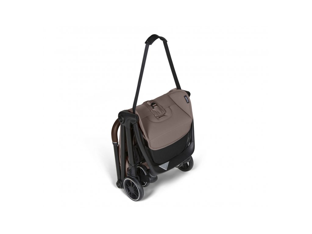 Kočík ľahko zložíte jednou rukou, po zložení sám stojí, takže sa s ním lepšie manipuluje na letisku, vo vlaku aj v reštaurácii. Pre ľahké prenášanie je súčasťou kočíka ramenný popruh a cestovná taška.