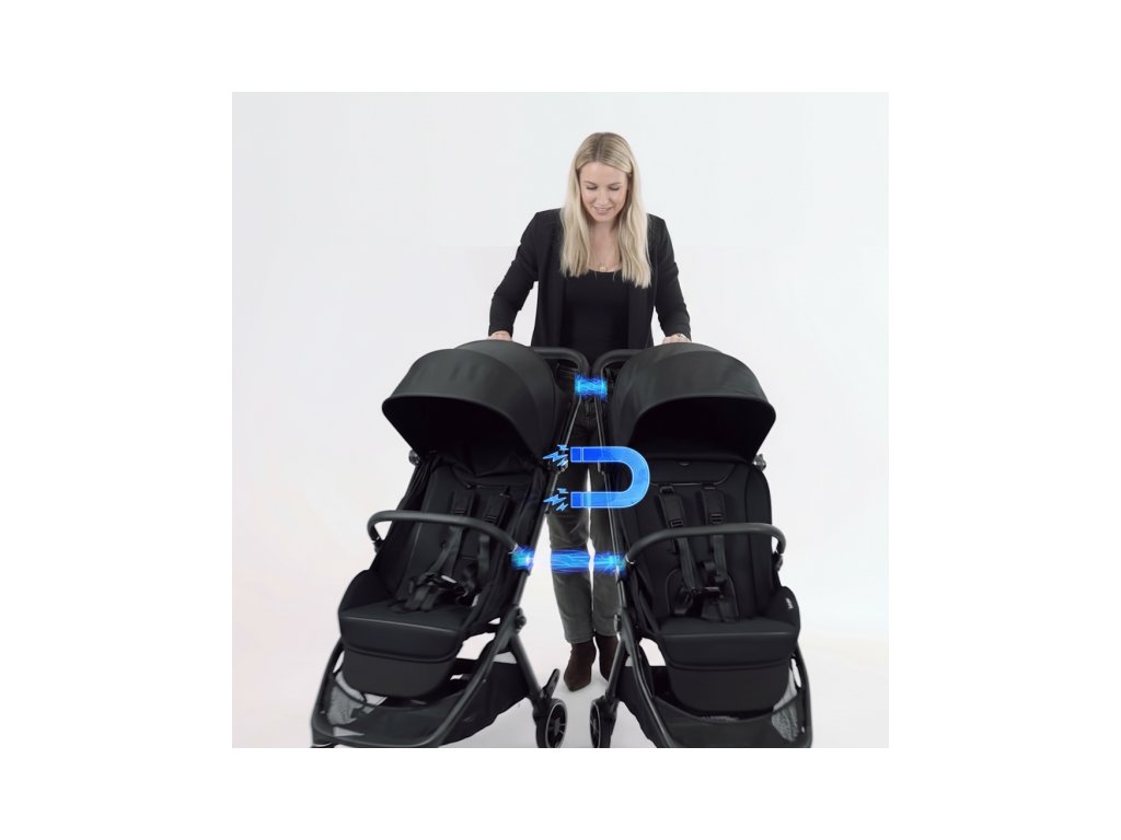 Connect Mini je jediný kočík svojho druhu s magnetickým prepojovaním, ktoré počas 1 sekundy spojí kompatibilné doplnky – a v prípade potreby aj dva kočíky dokopy a vytvorí tak praktický systém pre dve deti.