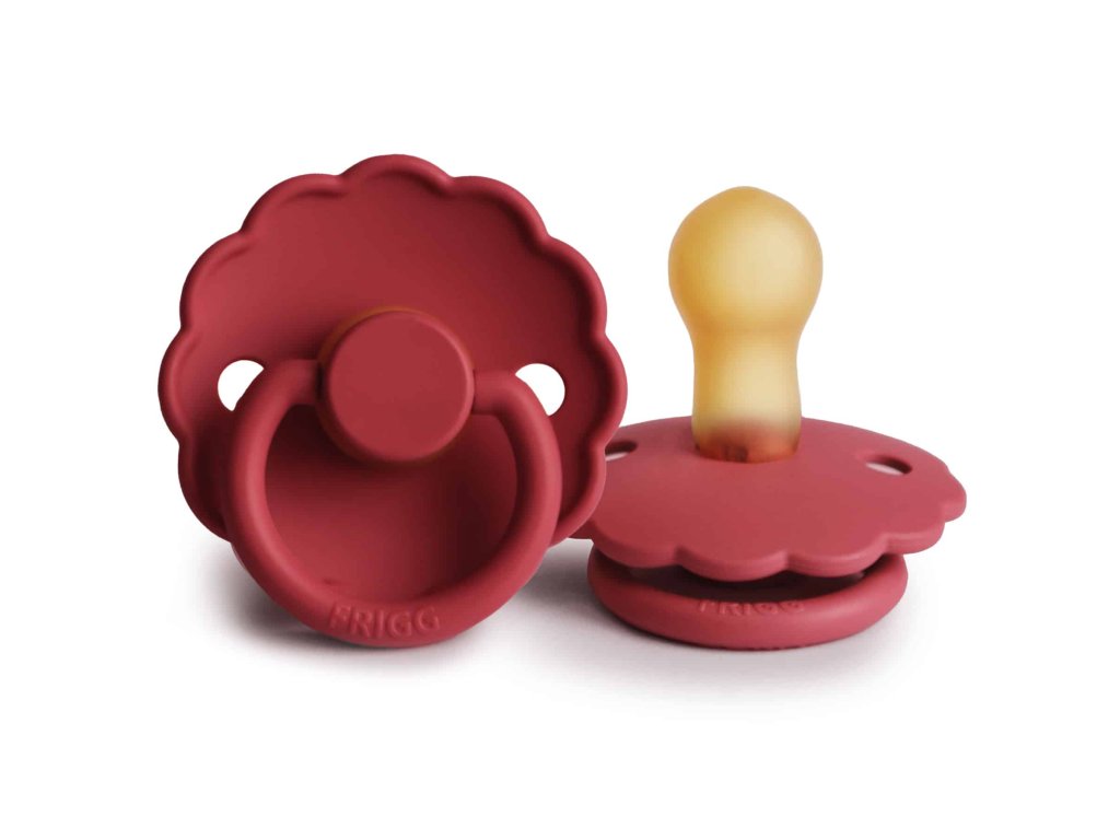 Cumlík je vyrobený z prírodného kaučuku, pričom jeho tvar je zakrivený jemne smerom von, aby sa zabránilo podráždeniu pokožky. Každý cumlík je strojovo testovaný na závadnosť, aby sa k našim najdôležitejším zákazníkom dostal vždy perfektný produkt. Pre väčšiu bezpečnosť sú v štíte prítomné vzduchové otvory. FRIGG je 100% dizajnovaný a vyrobený v Dánsku ako jediná značka cumlíkov na svete! Každý cumlík je zároveň vyrobený na princípe zero-waste, čím sa minimalizuje odpad materiálu vďaka možnosti recyklácie. Cumlíky sú vyrábané s maximálnym ohľadom na životné prostredie, a zároveň s dôrazom na uspokojenie potrieb najmenších detí. FRIGG kladie dôraz aj na bezpečnosť – cumlíky sú vyrábané bez BPA, PVC a ftalátov, každý cumlík podstupuje stretch a vacuum test pred uvedením do predaja a sú vyrábané podľa najprísnejšej normy EN1400-A2. Spoznajte svet značky FRIGG, inšpirovaný bohyňou zeme, vzduchu a plodnosti podľa severskej mytológie a nechajte sa zlákať dokonalosťou tvarov a farieb. Cumlík FRIGG Daisy s vrúbkovanými okrajmi, ktoré napodobňujú lupene kvetov, je základom elegantného dizajnu. Kvetinové a moderné detaily upútajú pozornosť každej štýlovej mamičky. Vďaka tomu sa FRIGG perfektne hodí pre dnešné matky, ktoré pri výbere základných potrieb pre bábätko prikladajú veľký význam klasickému dizajnu s modernými prvkami. Vlastnosti: – 100% navrhnuté v Dánsku – 100% vyrobené v Dánsku – každý cumlík musí prejsť naťahovacím a vákuovým testom – materiál štítu: Polypropylén (PP) – bezpečnostná norma: EN1400 + test A2 Podrobnosti o kaučukovom cumlíku veľkosti 1: – materiál: 100% prírodný kaučuk – veľkosť: 27 mm – odporúčaný vek: 0-6 mesiacovDodatočné parametre