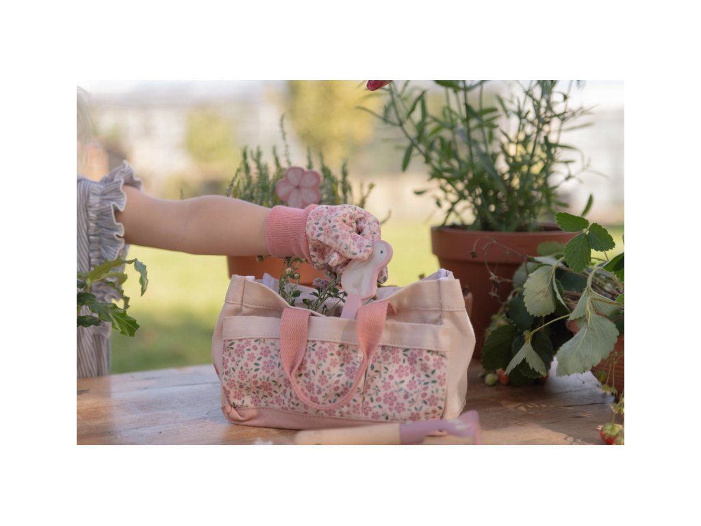 10-dielna sada náradia v krásnom prevedení obsahuje všetko, čo malá záhradníčka či záhradník potrebujú: kanvičku na zalievanie, záhradnícke rukavice, dve lopatky a hrabličky v kvalitnom prevedení z odolného kovu s drevenou rukoväťou a tri zapichovacie drevené menovky. Všetko je uložené v praktickej pevnej taške z bavlneného plátna s množstvom vreciek pre prehľadné ukladanie a jednoduché prenášanie. Náradie aj taška sú zdobené krásnou potlačou motívov zo života na záhrade.