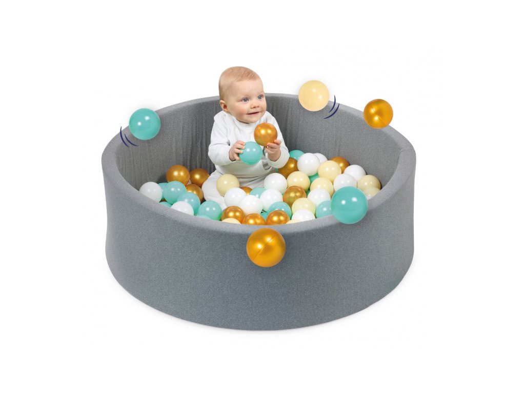 Ohrádka je naplnená jemnými plastovými loptičkami v pastelových farbách, ktoré stimulujú detské zmysly a podporujú rozvoj motoriky a koordinácie