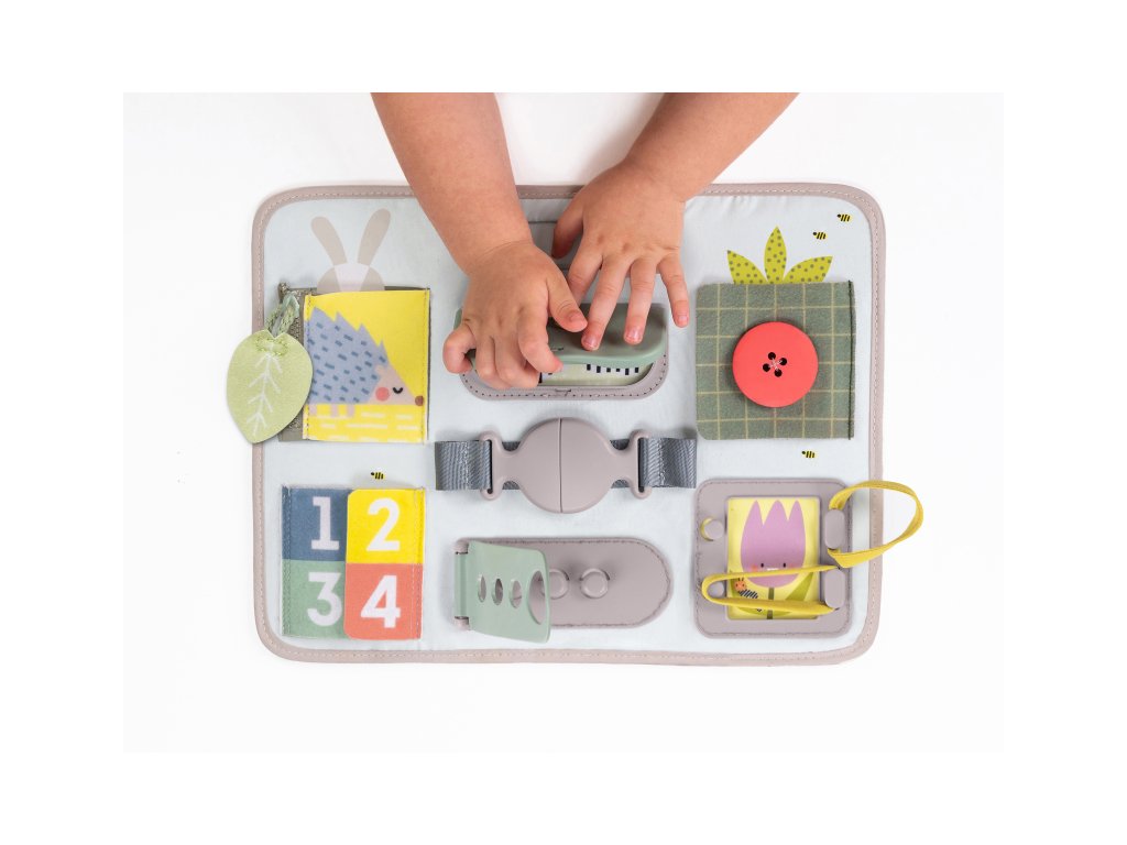Originálny hrací pult ponúka množstvo rôznorodých aktivít, medzi ktorými nájdete zips, veľký gombík, suché zipsy šnúrky, pracku, pútko a mnoho ďalšieho. Zapínaním a rozopínaním si deti precvičujú jemnú motoriku aj koordináciu oko-ruka. Aktivity zároveň podporujú rozvoj kreativity dieťaťa aj jeho schopnosti riešiť problémy.