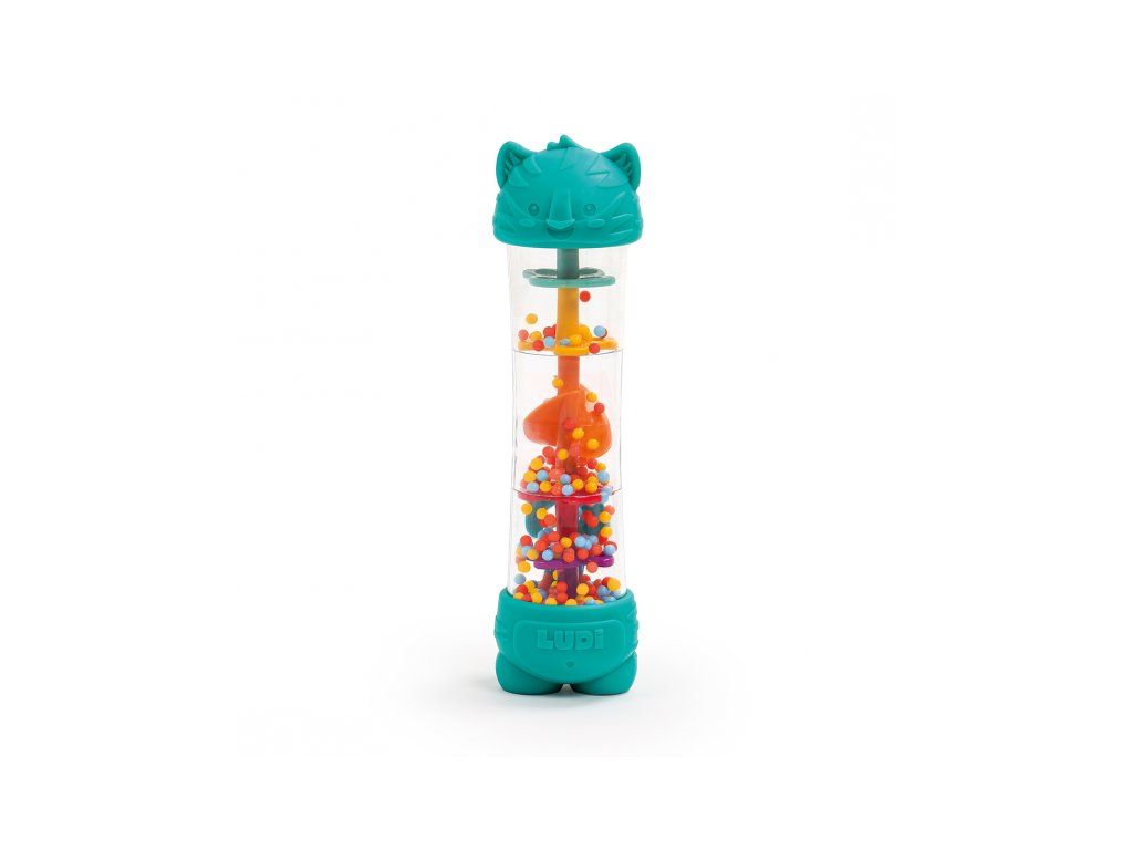 Hrkálka s korálkami dažďová palička je senzorická hračka pre deti od 6 mesiacov, ktorá kombinuje jemný upokojujúci zvuk, vizuálnu zábavu aj hryzátko pre obdobie rastu zúbkov. V priehľadnom tubuse sa pri otáčaní hračky pomaly presýpajú farebné guličky a vytvára príjemný upokojujúci „dažďový“ zvuk. Dieťa zároveň vidí pohyb guličiek a postupne chápe súvislosť medzi vlastným pohybom a výsledkom. Zakončenie hračky v podobe tigrie hlavy a nôh slúži aj ako hryzátka na úľavu citlivým detským ďasnám pri prerezávaní prvých zúbkov.