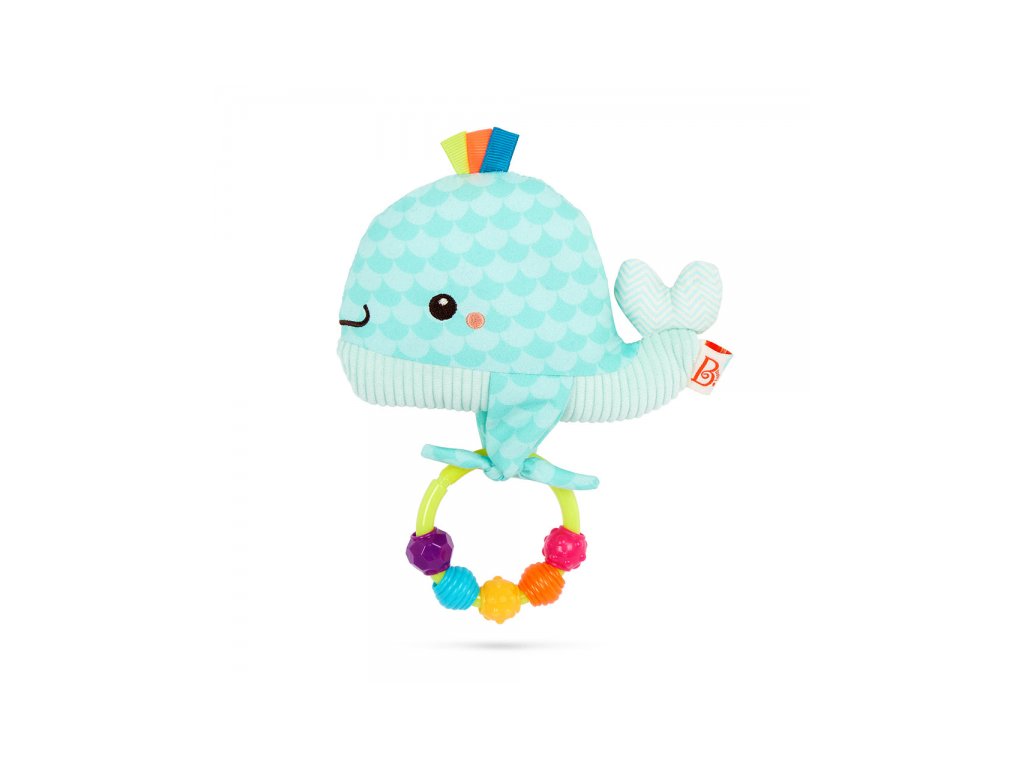 Plyšová hrkálka v podobe veľryby ponúka rôznorodé textúry, pohyblivé korálky aj šuštiace časti. Hračka láka dieťa na skúmanie a pomáha rozvíjať jednotlivé zmysly dieťaťa.