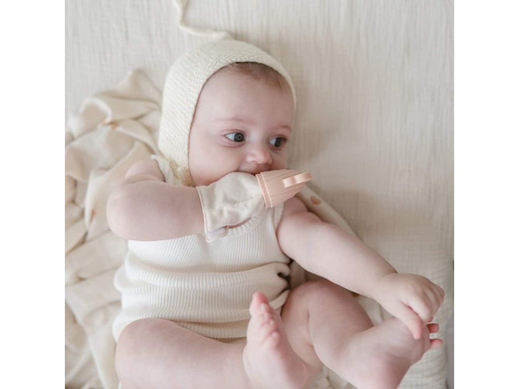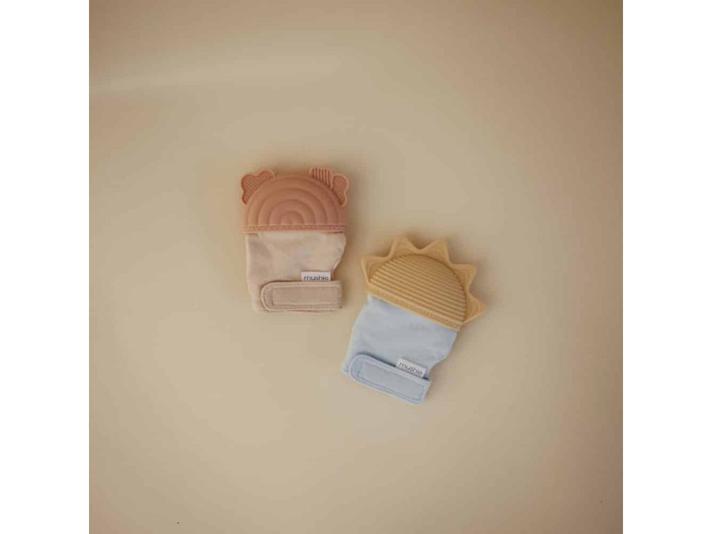 Mushie rukavica s hryzadielkom je ideálnym riešením pre najmenších, ktorí vstupujú do fázy prerezávania zúbkov. Je vyrobená z textúrovaného potravinárskeho silikónu a ponúka jemnú úľavu pre boľavé ďasná, keď bábätká skúmajú nutkanie žuť si ruky. Inovatívny dizajn rukavíc v spojení s nastaviteľným remienkom perfektne poslúži deťom, ktoré si ešte len osvojujú používanie tradičných hryzátok. Zabalené v mäkkej bavlnenej tkanine chráni jemnú pokožku pred nadmerným slinami a zároveň zaisťuje pohodlie. Rukavice bez námahy skĺznu na drobné ručičky a ich jemný zvuk vrások poskytuje dodatočné pohodlie. Mushie Teething Mitten – detaily- Materiály: potravinársky silikón, bavlnená tkanina, vnútorná krčka z PET plastu