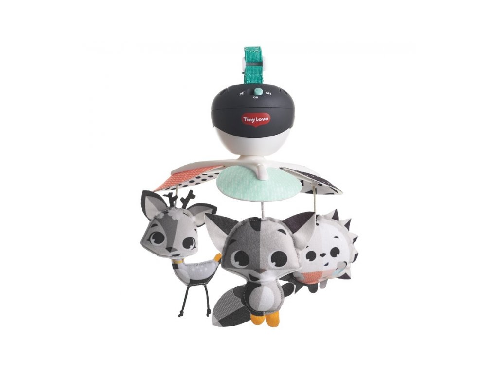 Hudobný kolotoč Tiny Love pre malú princeznú hrá až 30 minút 5 rôznych melódií. Pozornosť dieťaťa upútajú aj otáčajúce sa veselé postavičky. Kolotoč ponúka tri rôzne spôsoby uchytenia: univerzálny úchyt je vhodný napr. na cestovnú postieľku, klip je ideálny na uchytenie na kočík, opasok so suchým zipsom umožňuje uchytenie na autosedačku. Kolotoč tak vaše dieťa zabaví kdekoľvek na cestách.