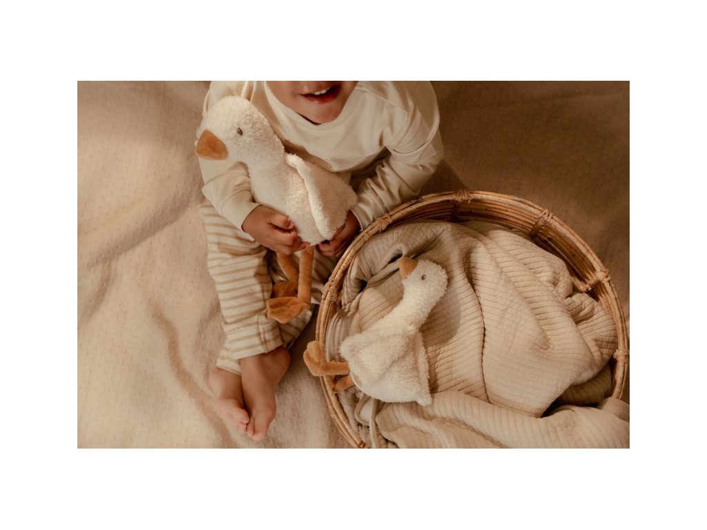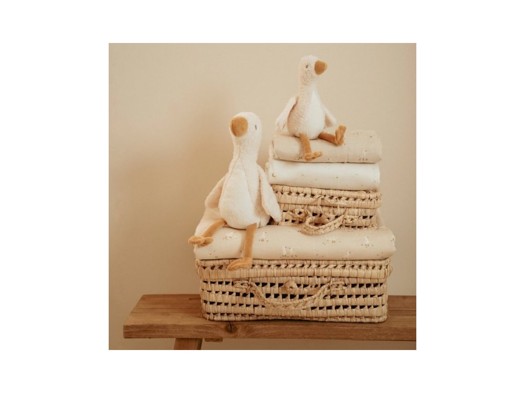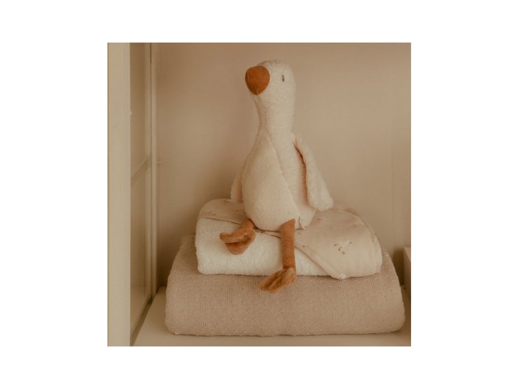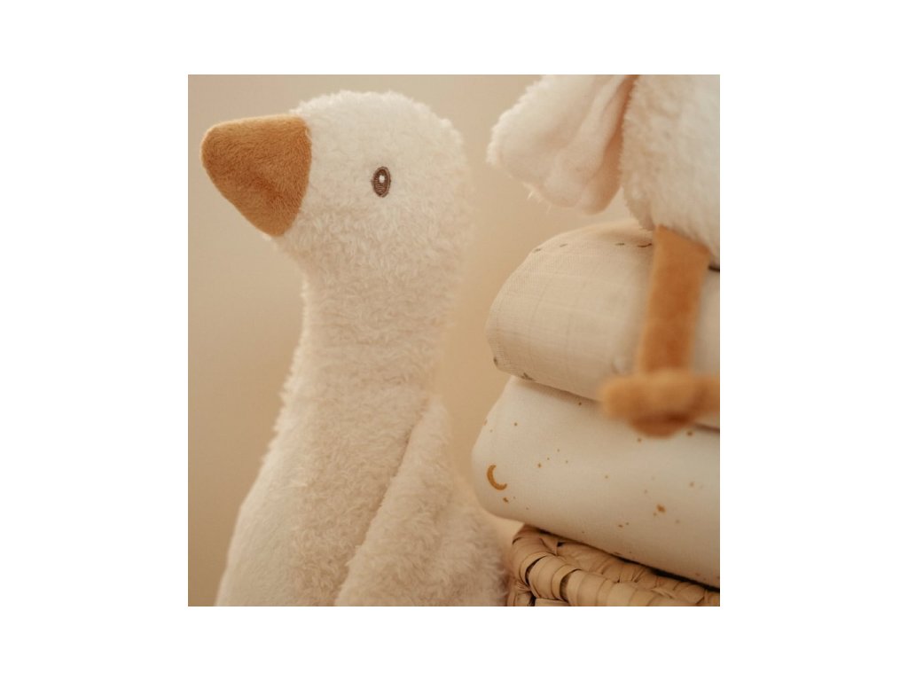 Jemná plyšová hračka v podobe rozkošnej húsky je ideálna ako maznáčik do postieľky pre lepšie zaspávanie vášho dieťaťa. Hus vie sedieť a môže sa tak stať aj krásnou dekoráciou v detskej izbe.