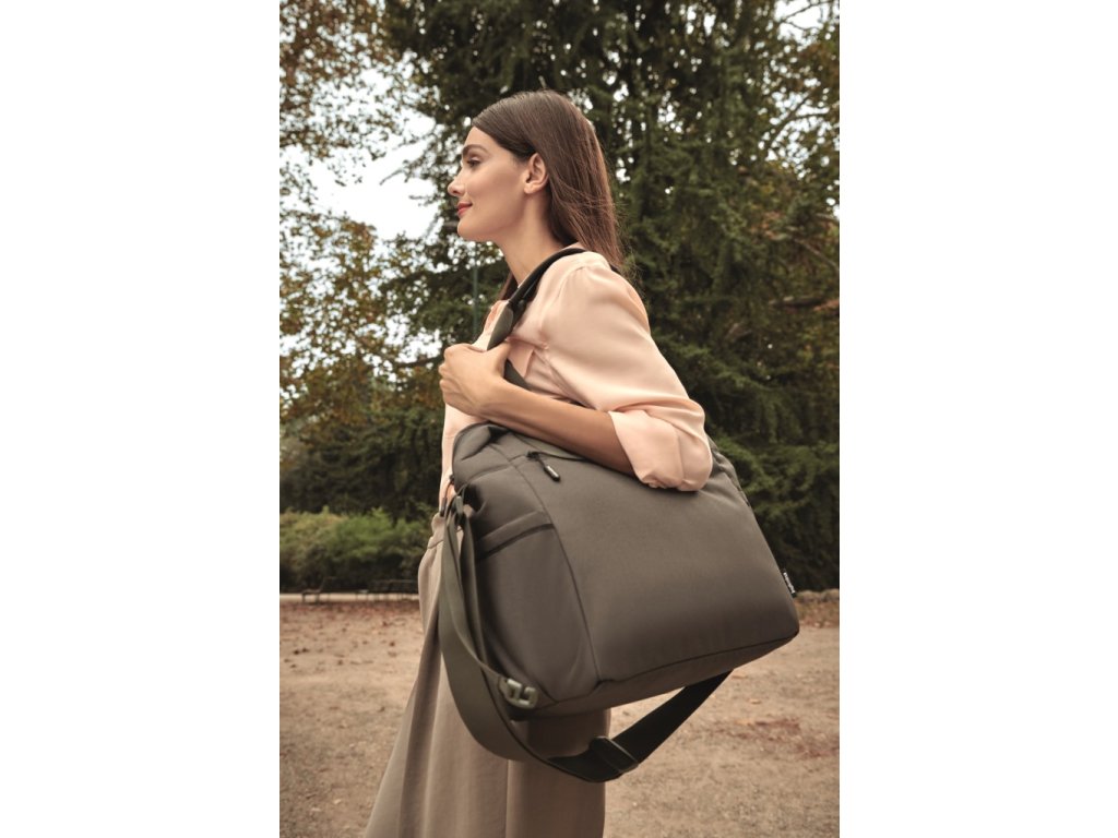 Praktická a priestranná taška v modernom dizajne jednoduchého čistého tvaru, ktorú využijete naplno každý deň. Obsahuje prebaľovaciu podložku.