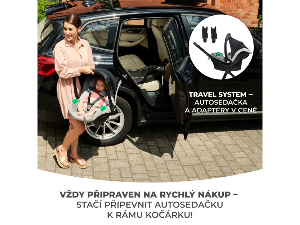 Vďaka možnosti uchytenia detskej autosedačky na rám kočíka pôjdete s dieťaťkom na prechádzku alebo domov, aj vtedy, keď zaspalo počas cesty autom. Univerzálne adaptéry sú súčasťou balenia.