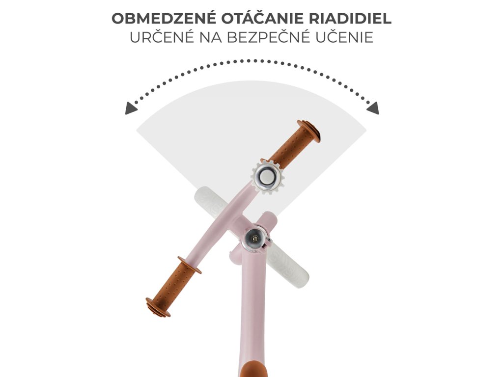 - Trojkolka FLY PLUS má obmedzený uhol otáčania riadidiel, čo zabraňuje náhlemu a nebezpečnému otáčaniu počas rýchlej jazdy.
