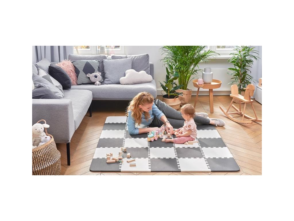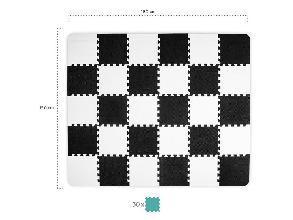 Praktická a pohodlná penová podložka – puzzle – z 30 dielov, ktoré sa dajú ľubovoľným spôsobom spájať. Je určená pre najmenšie deti na hranie a ležanie a tiež na prvé krôčiky.