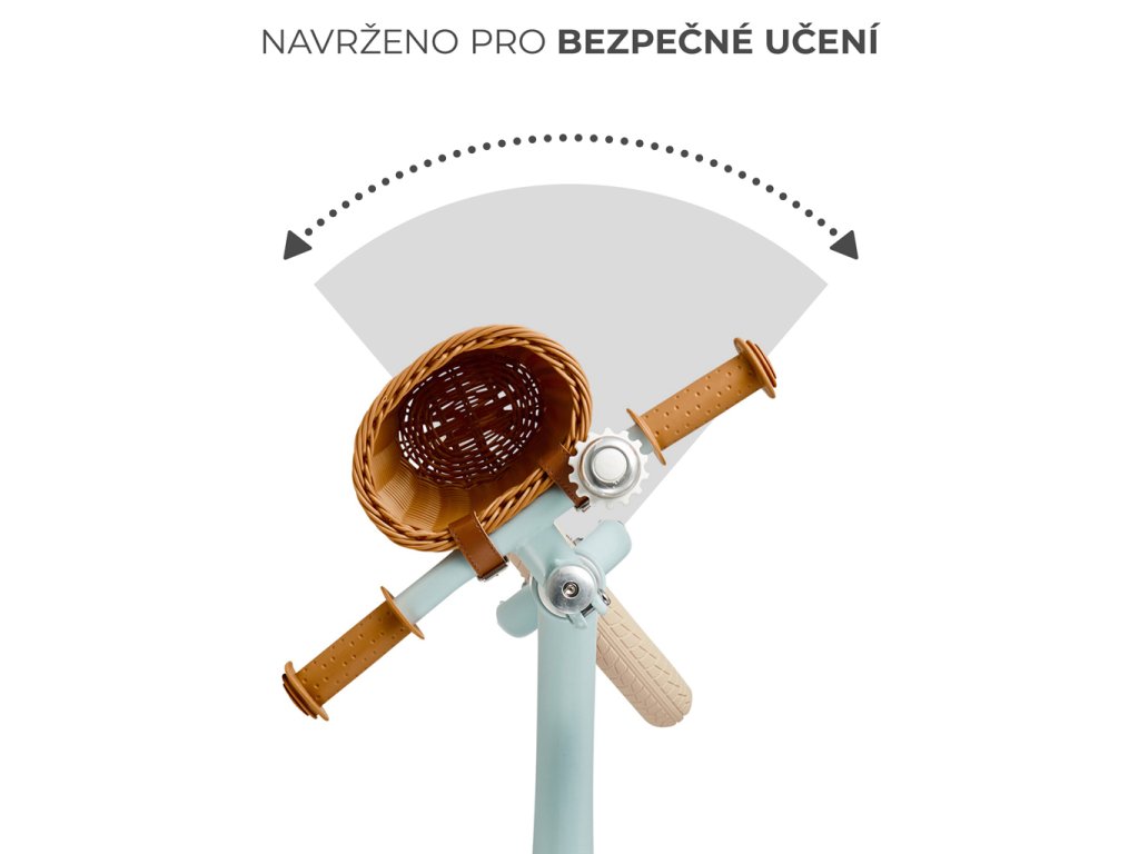 Volant má gumové rukoväte, ktoré sú navyše protišmykové. To uľahčí vášmu dieťaťu riadenie odrážadla v akejkoľvek situácii bez rizika, že mu ruky skĺznu z volantu. Súčasťou je krásny košík na drobnosti.