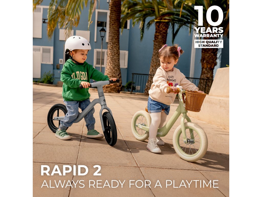 Pohodlné sedlo poskytuje široký rozsah nastavenia výšky, takže odrážadlo rastie spolu s vaším dieťaťom. RAPID má tiež obmedzený uhol natočenia volantu, ktoré chráni vaše dieťa pred nekontrolovaným zatáčaním počas výuky jazdenia. A nízko posadený rám uľahčuje nasadanie a zosadanie. Odrážadlo RAPID, rovnako ako každé odrážadlo Kinderkraft, podporuje rozvoj rovnováhy a motoriky. Zároveň vo vašom dieťati vzbudí lásku k aktivitám na čerstvom vzduchu.