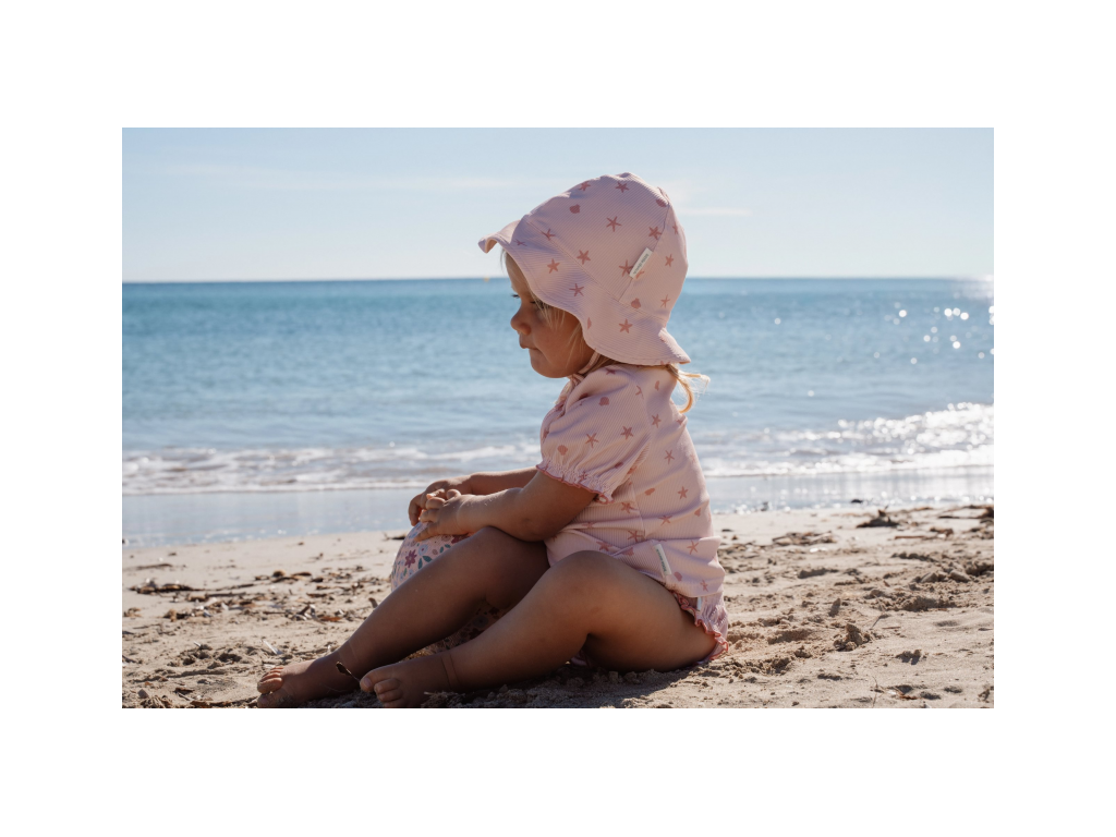Klobúčik s krásnou potlačou chráni vaše dieťa pred slnkom pri kúpaní pri mori aj doma na záhrade. Či už vaše deti milujú skákanie vo vlnách, kúpanie v bazéne alebo si rady stavajú hrady z piesku, s touto čiapočkou si môžu bezstarostne užívať celý deň.