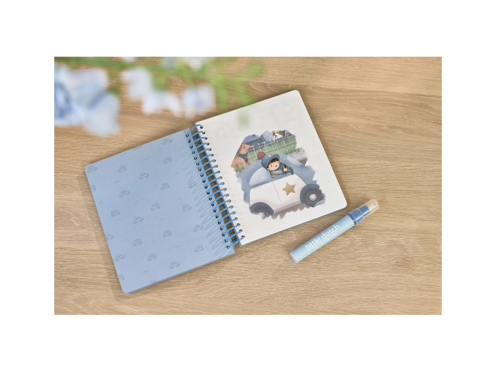 Knižka s piatimi ilustrovanými stránkami je opakovane použiteľná. Vďaka krúžkovej väzbe z pevného kartónu drží otvorená na pohodlné maľovanie.