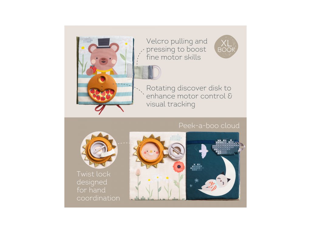 15 interaktívnych aktivít - zipsy, pracky, šnúrky alebo schovávačky - všetko, čo malé ručičky potrebujú na precvičenie zručností ako je zapínanie, viazanie a obliekanie