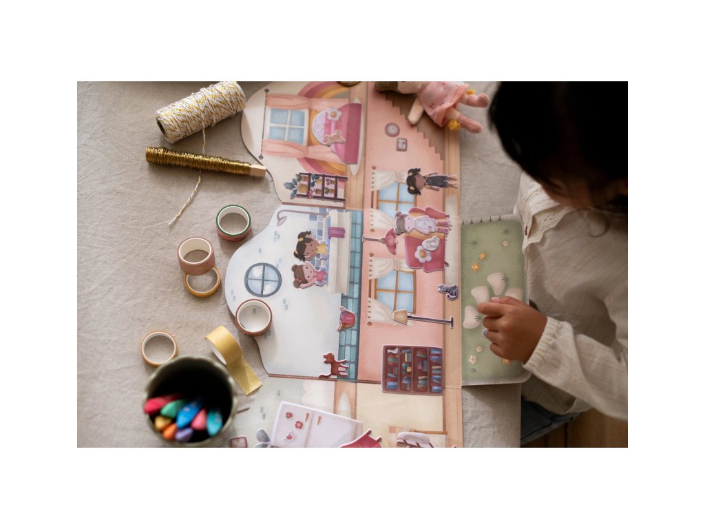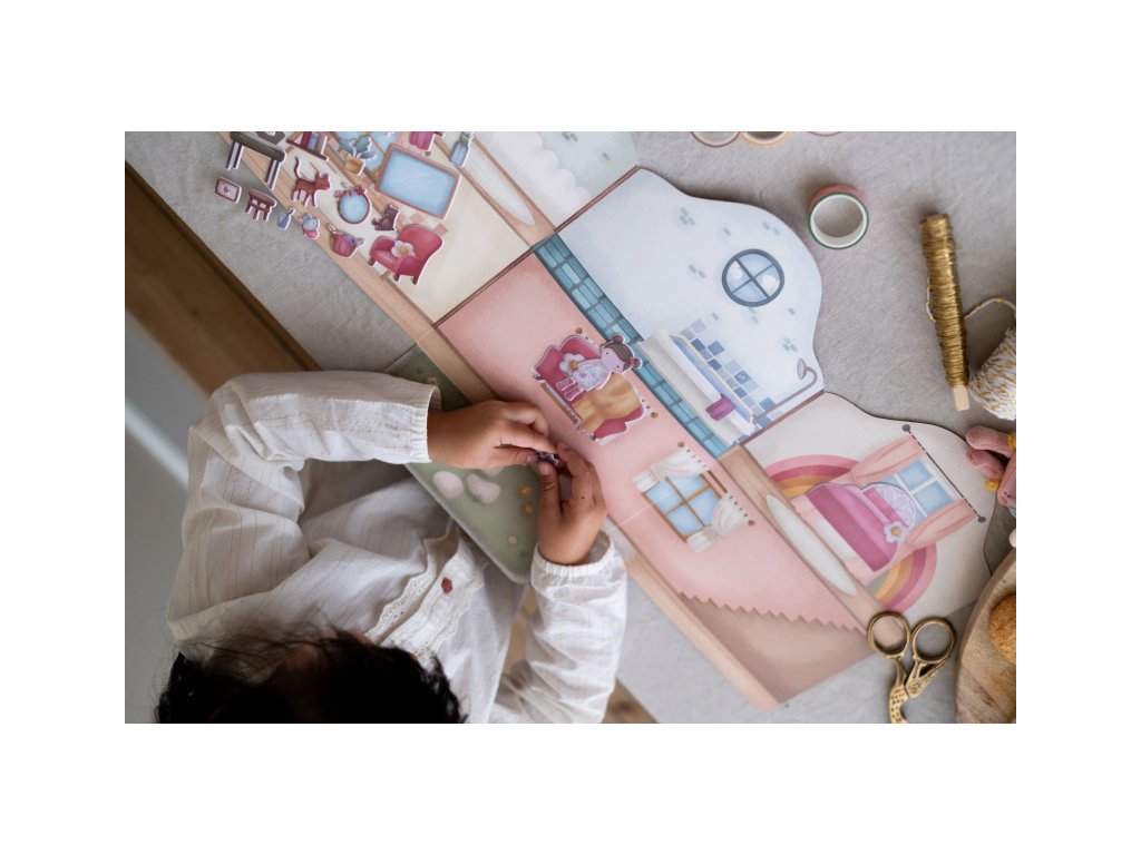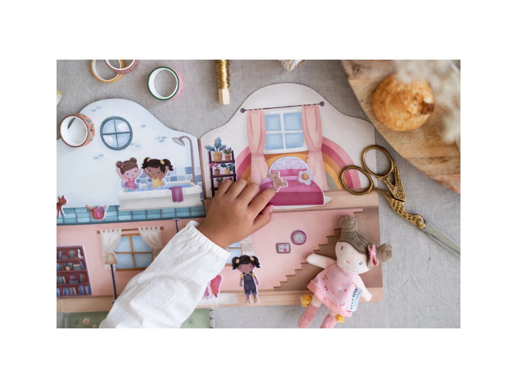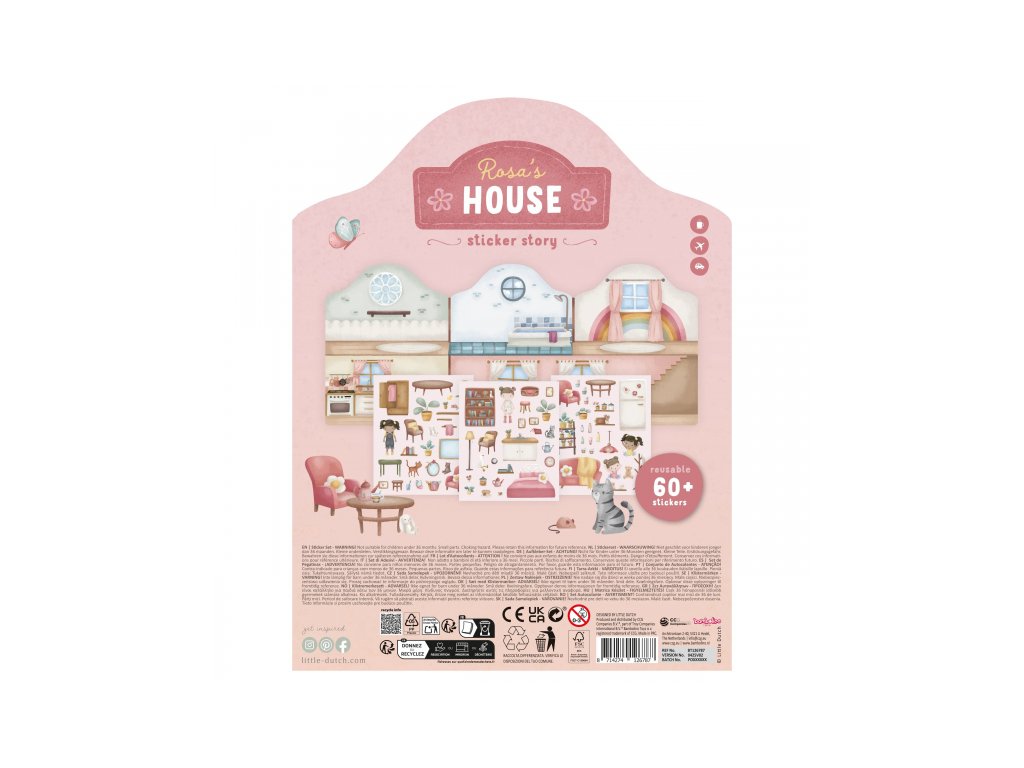Podporte detskú fantáziu s touto sadou opakovane použiteľných samolepiek Little Dutch. Deti môžu znova a znova vyzdobiť domček Rosy viac ako šesťdesiatimi veselými 3D samolepkami a zakaždým vytvoriť iný príbeh.