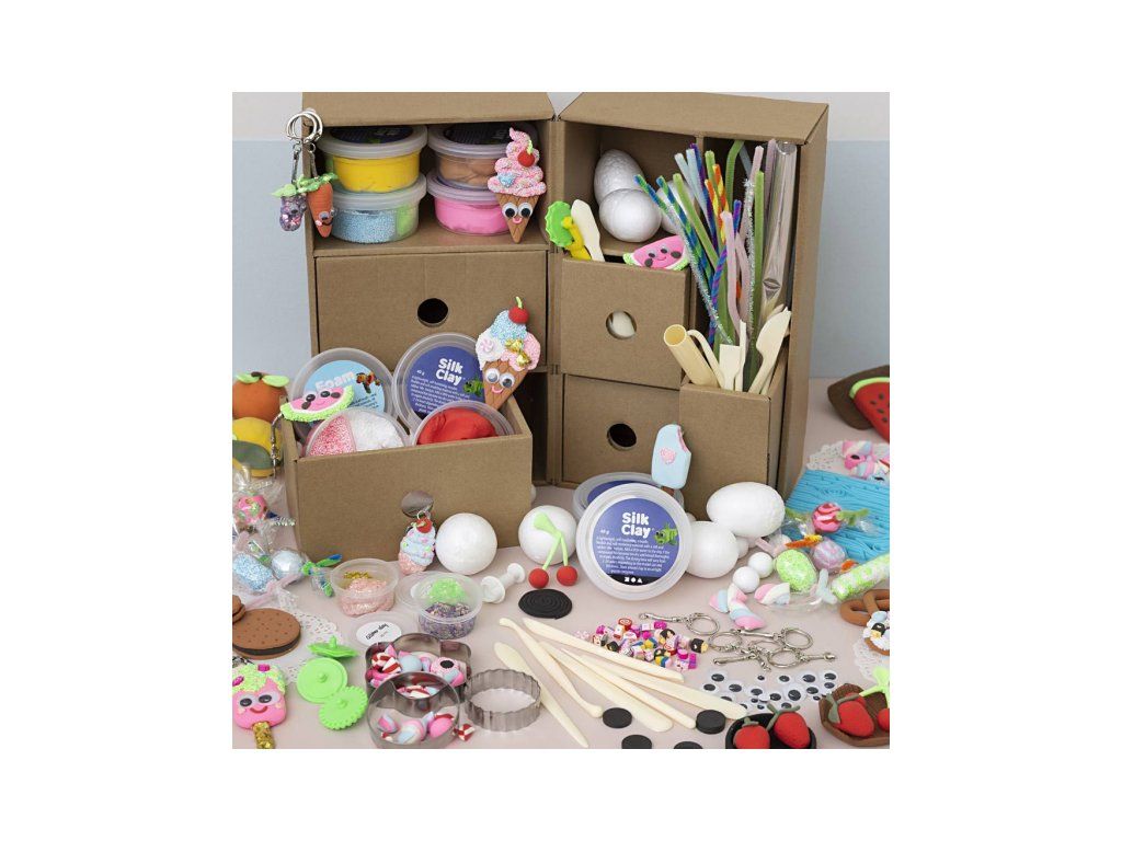 Maxi kreatívna sada v boxe so zásuvkami je plná materiálov na modelovanie. Nájdete v nej rôzne druhy modelovacích hmot, nástrojov a doplnkov pre nekonečné tvorenie aj veľa inšpirácie pre prvé projekty.