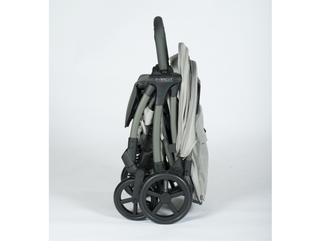 Kočík M.2x disponuje mechanizmom umožňujúcim skladanie a rozkladanie kočíka len jednou rukou. V zloženom stave navyše samostatne stojí na podlahe.