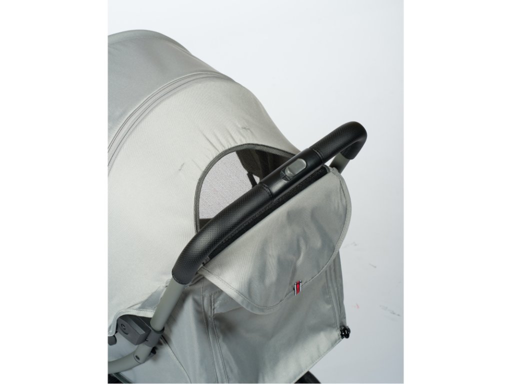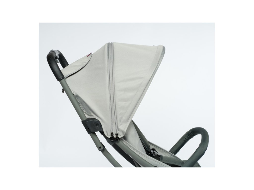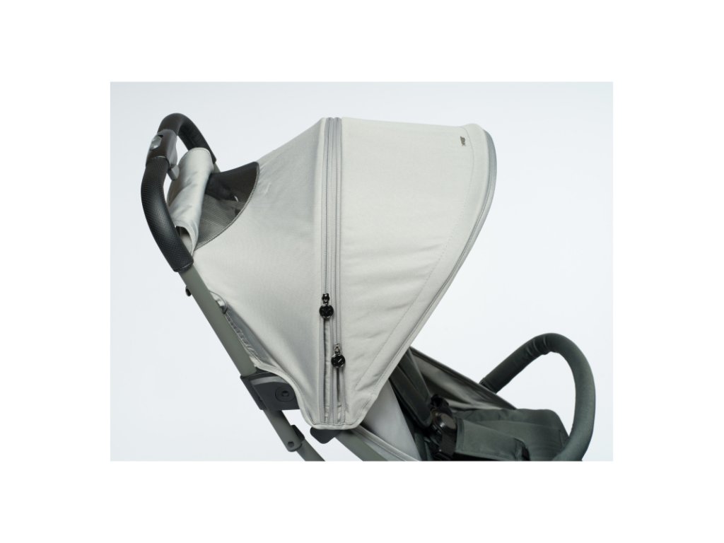 Veľkú striešku kočíka M.2x je možné pomocou dvoch zipsov ďalej predĺžiť a vytvoriť tak bezpečné miesto pre vaše dieťa. Priedušnosť a prúdenie vzduchu je vždy zaistené otvorením priezorov umiestnených v hornej časti striešky a v chrbtovej opierke.