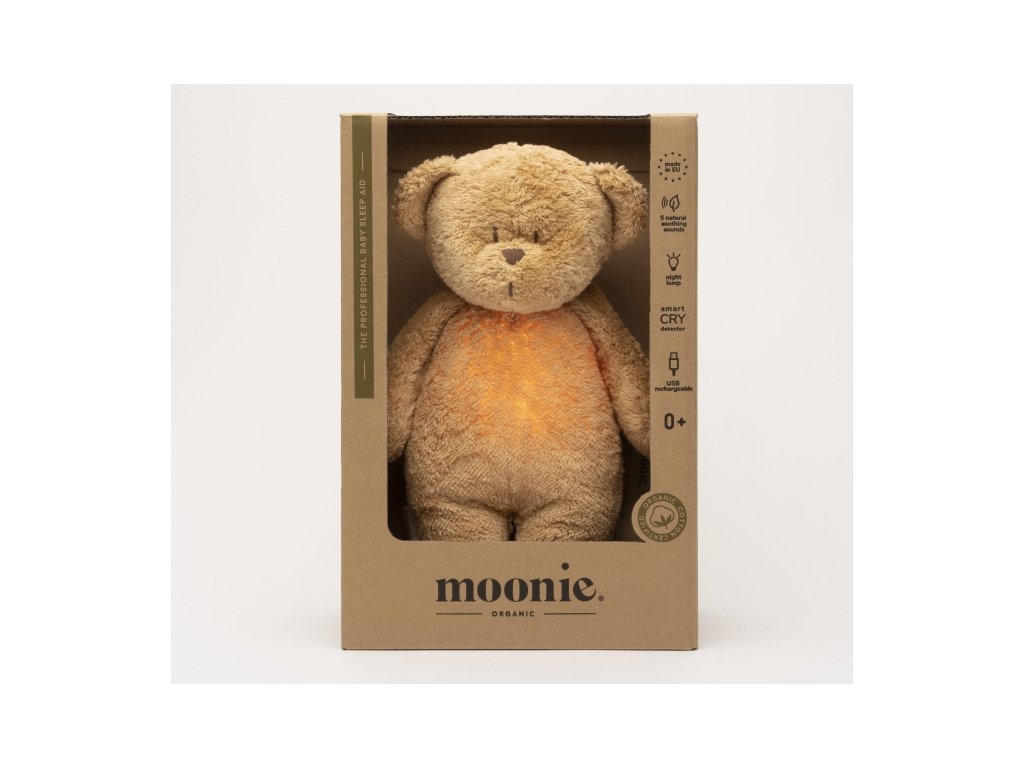 Moonie uspávačik v podobe rozkošného medvedíka s nočným svetlom a relaxačnými zvukmi pomáha bábätku upokojiť sa a ľahšie zaspať. Upokojujúce zvuky pripomínajú dieťaťu prostredie v maternici mamičky pred jeho narodením. Uspávačik ponúka päť prírodných relaxačných zvukov (tlkot srdca, vietor, lesný potok, morské vlny, dážď), kalimba uspávanku, dve klasické uspávanky a umožňuje nahranie vlastného hlasu.