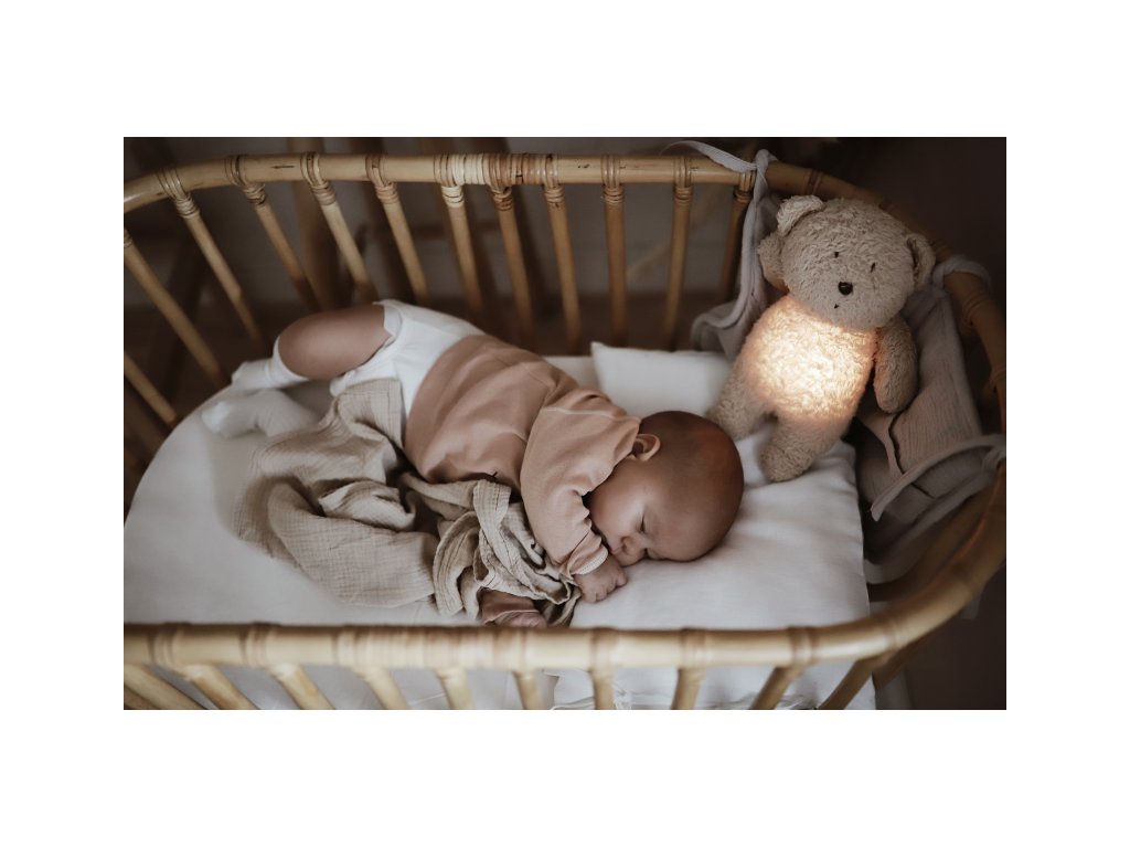 Bruško medvedíka svieti a slúži ako nočné svetlo s výberom siedmich farieb svietenia. Jemné svetlo pomáha dieťaťu cítiť sa v postieľke bezpečne. Svetlo je možné zapnúť aj bez zvukov. Pri zapnutej funkcii Shake svetlo zapnete zatrasením hračkou. Medvedík sa pri svietení nijako nezahrieva a je pre dieťa úplne bezpečný.