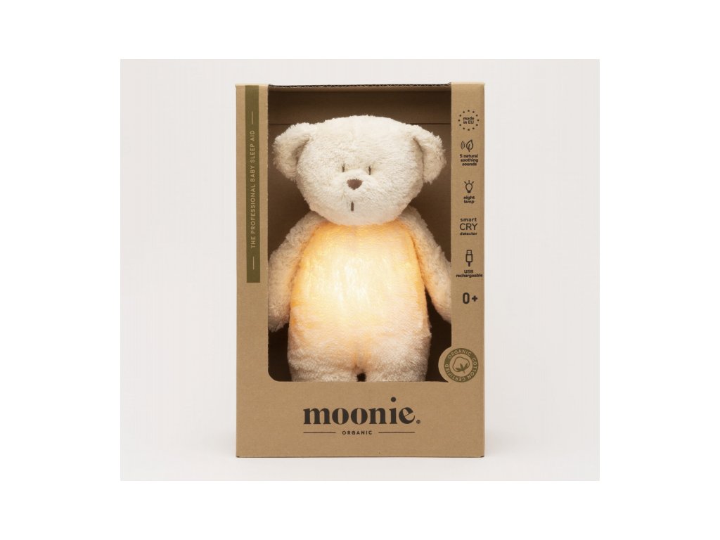 Moonie uspávačik v podobe rozkošného medvedíka s nočným svetlom a relaxačnými zvukmi pomáha bábätku upokojiť sa a ľahšie zaspať. Upokojujúce zvuky pripomínajú dieťaťu prostredie v maternici mamičky pred jeho narodením. Uspávačik ponúka päť prírodných relaxačných zvukov (tlkot srdca, vietor, lesný potok, morské vlny, dážď), kalimba uspávanku, dve klasické uspávanky a umožňuje nahranie vlastného hlasu.