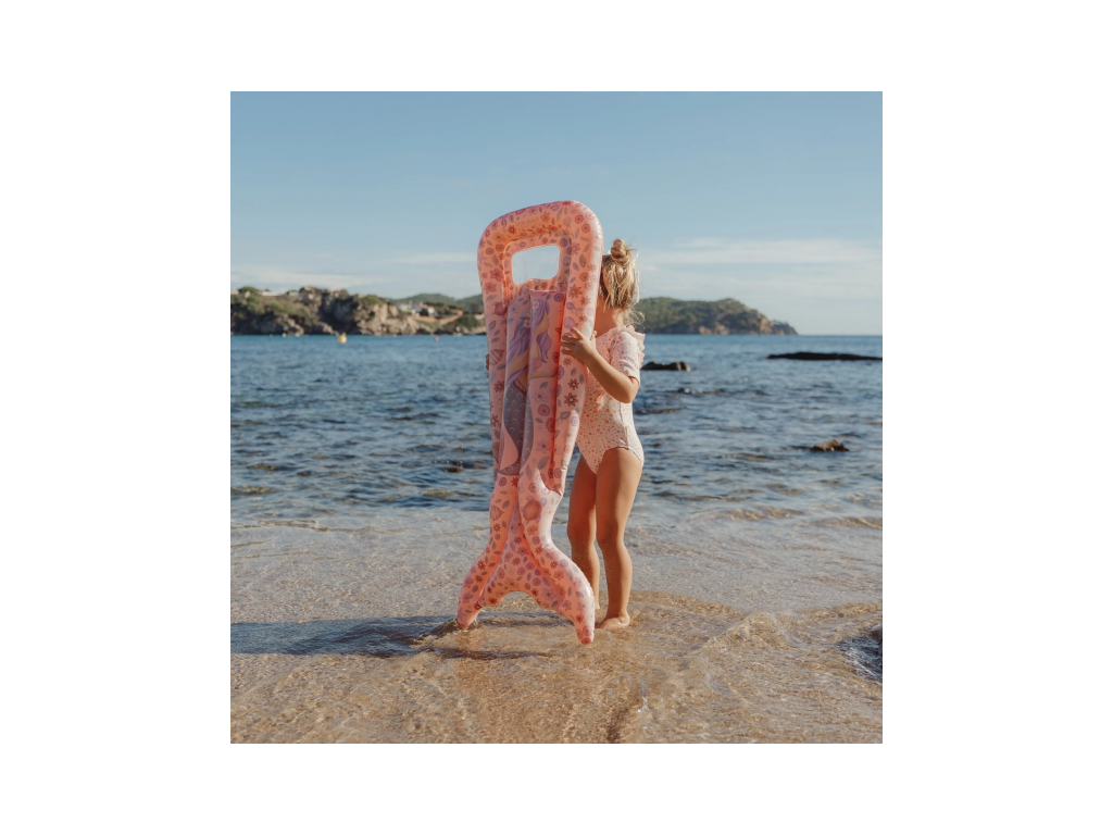 Nafukovacie lehátko do vody s krásnou potlačou motívov morskej víly a kvetov vaše deti využijú na hranie v bazéne aj na pláži pri mori. Priehľadné okienko umožňuje sledovať život pod hladinou pre väčšiu zábavu.