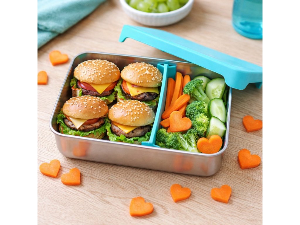 Táto nehrdzavejúca bento krabička kanadskej značky Melii kombinuje odolné nerezové telo, silikónové viečko a posuvnú odnímateľnú prepážku, ktorú si ľahko prispôsobíte podľa potreby. Je ideálna na oddelenie desiatej, prílohy, ovocia, zeleniny alebo hlavného jedla.