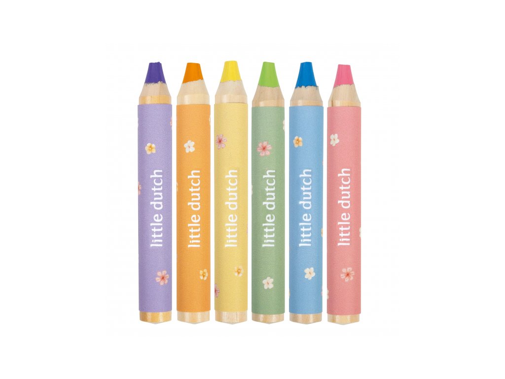 Nechajte svoje dieťa rozvinúť fantáziu s touto Little Dutch sadou 6 krátkych silnejších pasteliek v jemných odtieňoch. Sú ideálne pre malé ručičky, ktoré sa učia kresliť, maľovať a objavovať farby.