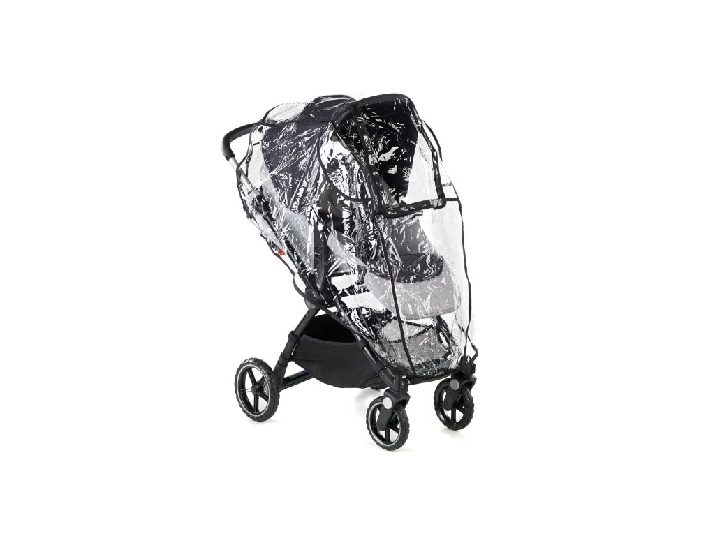 Univerzálna pláštenka je vhodná pre väčšinu kočíkov so športovým sedením. Nastaviteľné okienko, ktoré je možné udržať otvorené zapnutím suchého zipsu na okraji, umožňuje jednoduchú kontrolu dieťaťa.