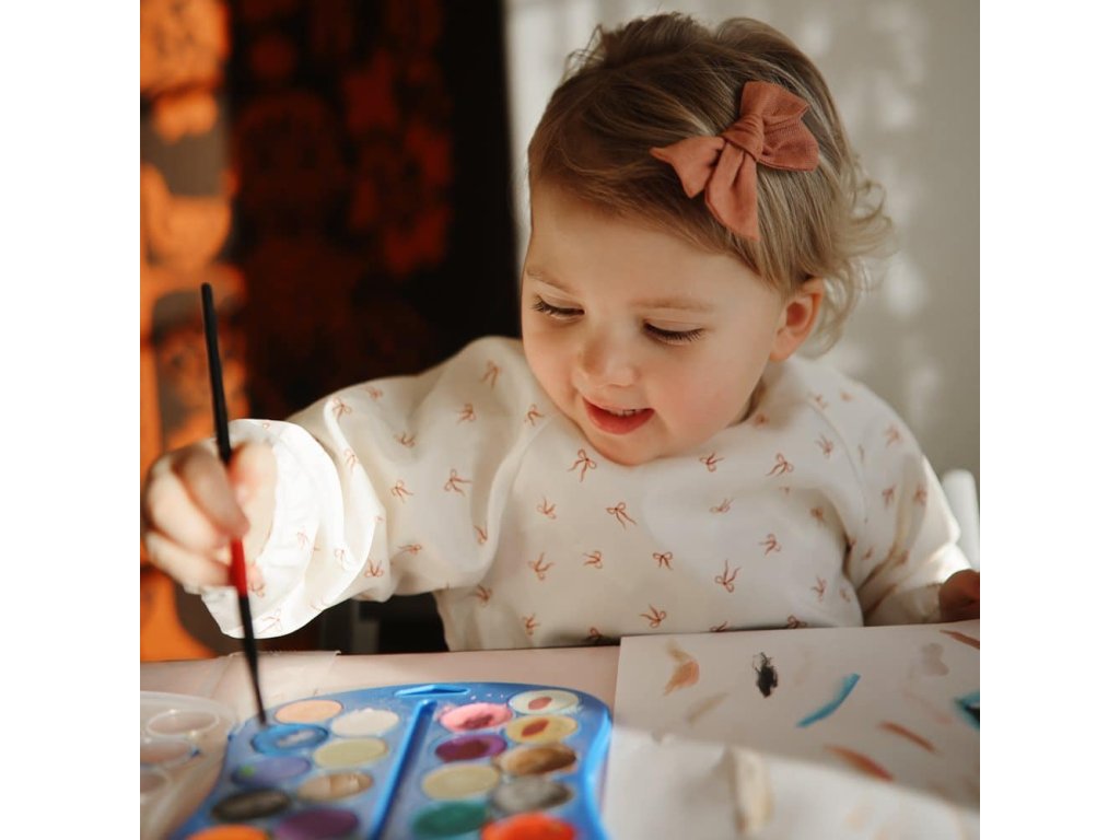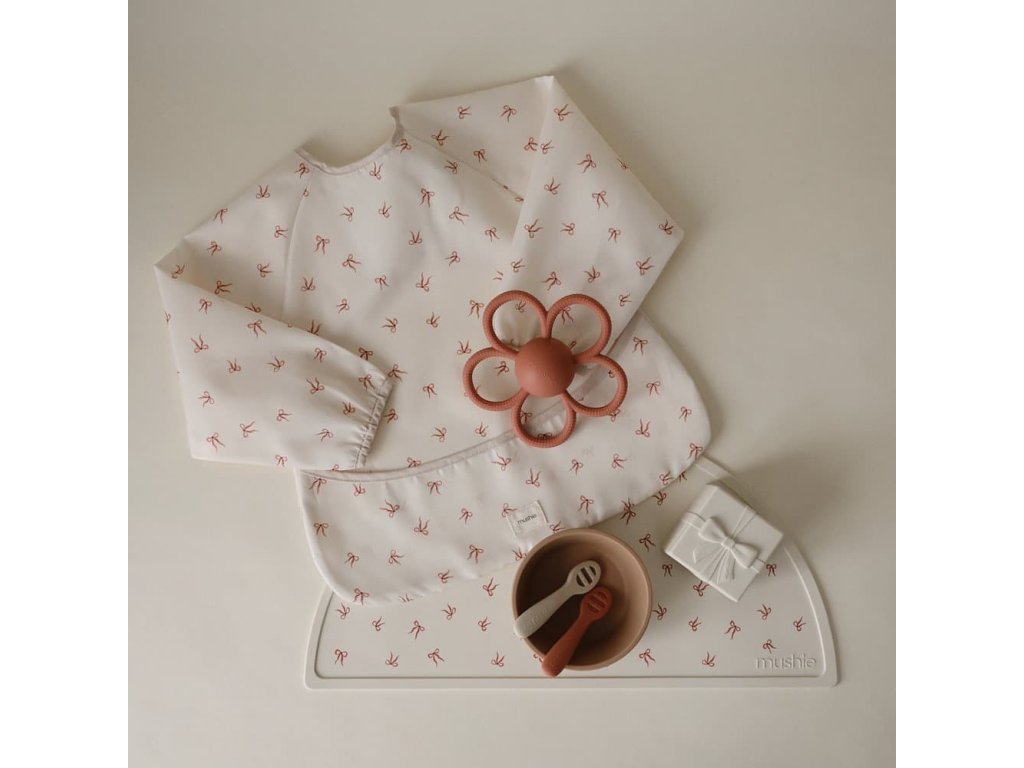 Podbradník s dlhým rukávom od značky Mushie pre bezproblémové jedenie!