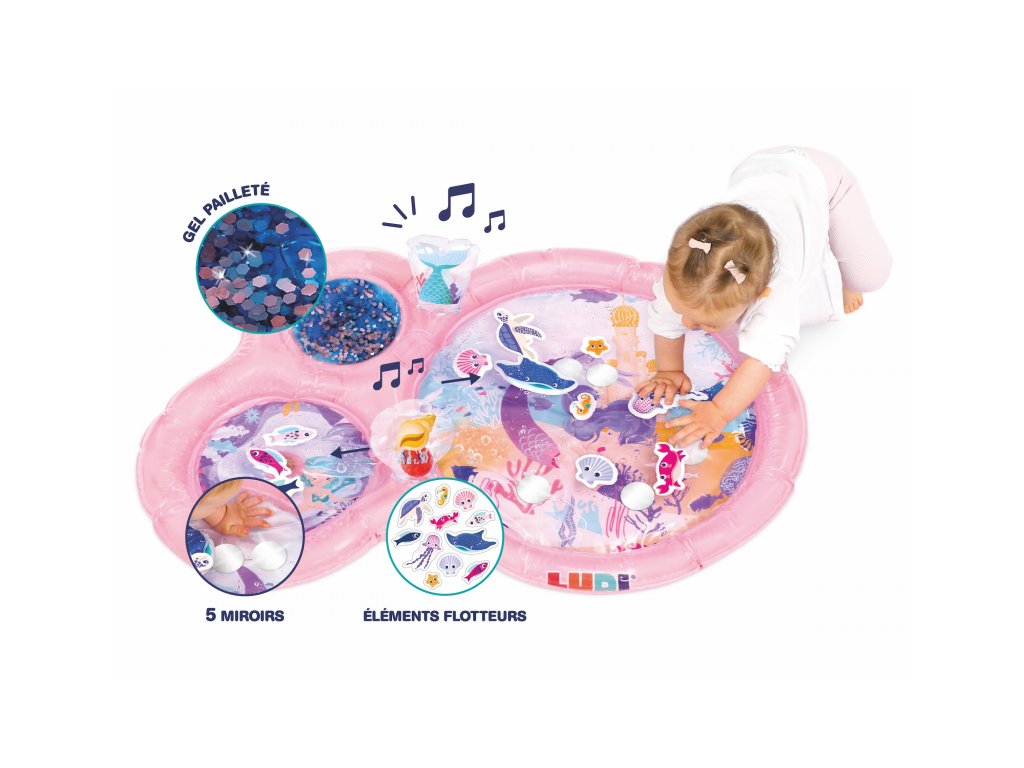 Interaktívna podložka na hranie naplnená vodou pripomína skutočný podmorský svet s vodnými živočíchmi. Figúrky morských tvorov sa vo vnútri vo vode začnú pohybovať, kedykoľvek dieťa na podložku siahne rukou. Jednotlivé časti podložky sú prepojené, takže keď sa dieťa o podložku oprie, voda prúdi medzi jednotlivými časťami. Na nafukovacích okrajoch sú umiestnené dve nafukovacie madlá, ktoré pri stlačení pískajú a cinkajú.