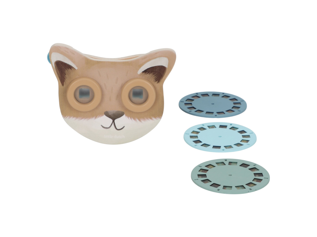 Prohlížeč příběhů Little Dutch je kouzelná hračka, která děti vtáhne do světa vyprávění a fantazie. Má podobu roztomilé lišky a funguje jednoduše: stačí otáčet kotoučky a před očima se odvíjejí obrázkové příběhy z lesa. Součástí jsou tři výměnné kotouče s příběhy kamarádů z lesa. Ideální pro klidné chvíle před spaním i společné vyprávění s rodiči. Hračka podporuje rozvoj řeči, představivost a schopnost tvořit vlastní příběhy.