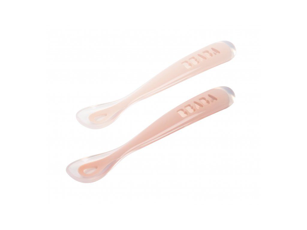 Silikónové lyžičky Beaba pre najmenších sú šetrné k citlivým detským ďasnám a navrhnuté pre hladký prechod z cumlíka na lyžičku. Dlhá rukoväť uľahčuje rodičovi naberanie z misky aj pohára bez zašpinenia rúk. Praktické puzdro umožňuje hygienické prenášanie lyžičiek napr. v prebaľovacej taške.