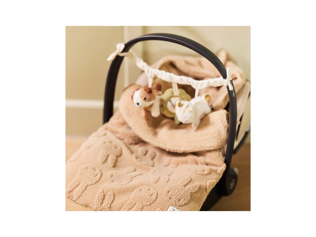 Reťaz s hračkami ľahko pripevníte ku kočíku aj autosedačke vďaka viazacím šnúrkam.