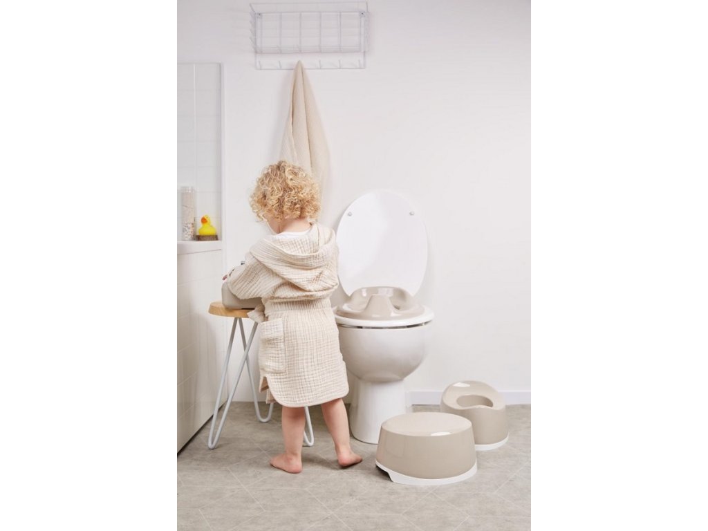 Sedadlo na toaletu pomáha Vášmu maličkému sedieť na toalete uvoľnene a pohodlne. Spolu so stúpadlom približuje vášmu dieťaťu možnosť začať toaletu používať. Je určené pre deti od 18 mesiacov do 5 rokov. Maximálne zaťaženie je 30 kg. Je vybavené nastavovacím kolíkom, pomocou ktorého sedadlo prispôsobíte takmer každej toalete. Ochrana proti striekajúcej vode zabraňuje všetkým postriekaniam na toalete.