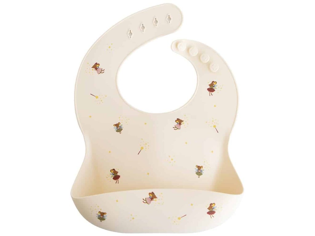 Udržte svoje dieťatko v pohodlí a čistote s premyslene navrhnutým silikónovým podbradníkom Mushie.