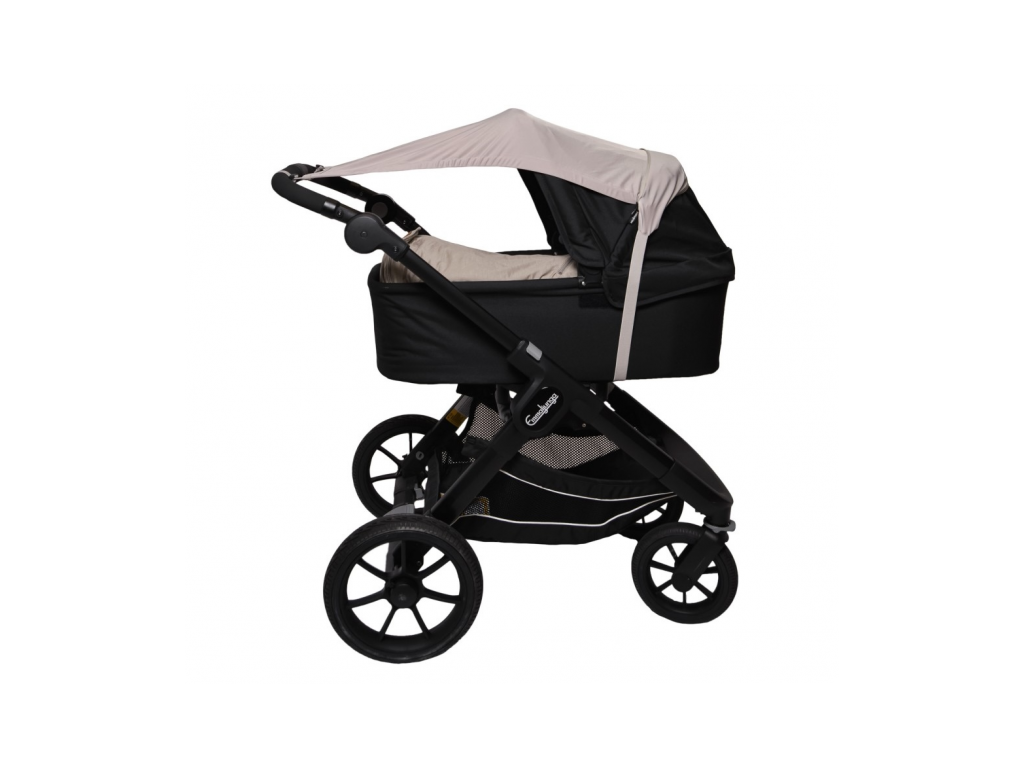 Slnečná clona na kočík je praktický doplnok, ktorý zaistí dieťaťu tieň bez prehrievania priestoru v kočíku. Keď slnko na chvíľu zmizne, nemusíte clonu dávať dole, stačí ju schovať vo vrecku na zips, z ktorého ju behom pár sekúnd znova vytiahnete.