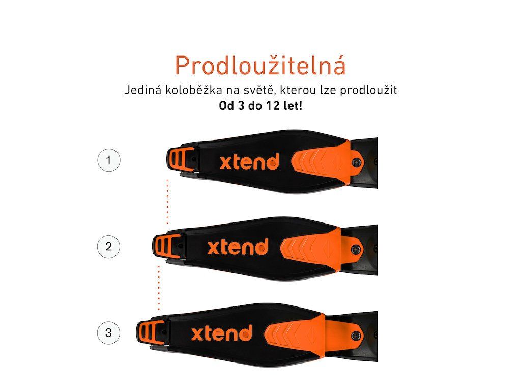Xtend Scooter bol navrhnutý tak, aby sprevádzal svojho majiteľa detstvom od 3 rokov až do 12 rokov. Jedná sa o kolobežku s možnosťou predlžovania stúpadla a výškového nastavenia riadidiel. Vďaka týmto funkciám je možné kolobežku využívať celú radu rokov.