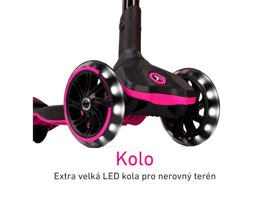 extra veľké predné LED kolesá pre hladkú jazdu na nerovnom teréne
