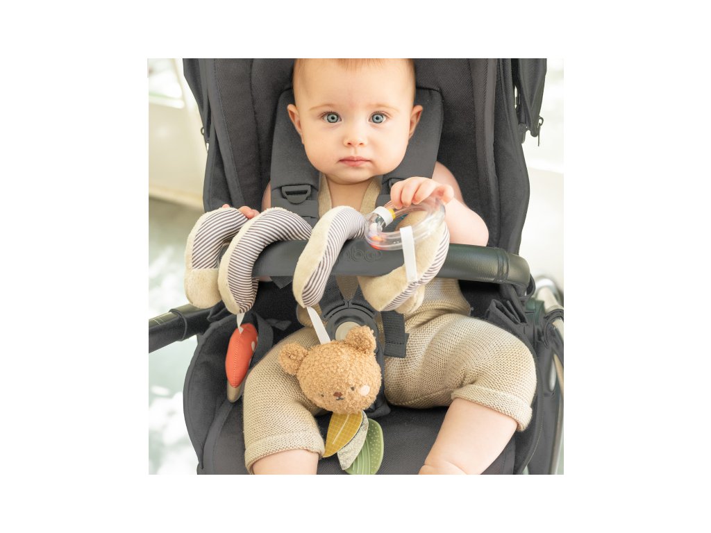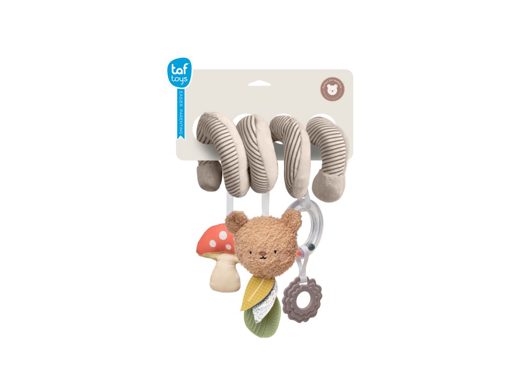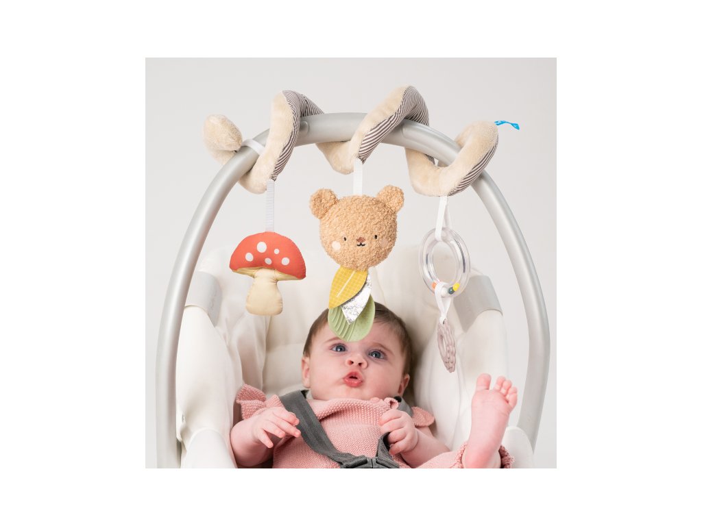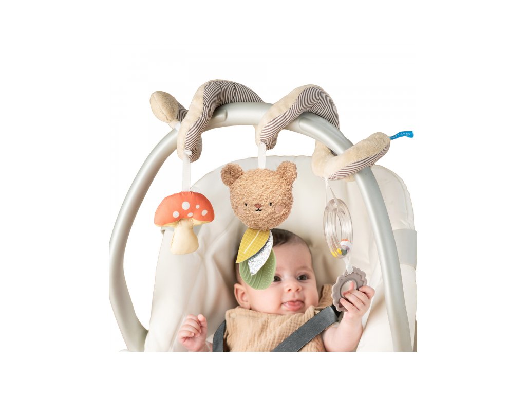 Špirála Taf Toys Bear Hugs je multi-senzorická hračka, ktorá zabaví vaše bábätko od narodenia doma aj na cestách. Vďaka špirálovému tvaru ju ľahko upevníte na kočík, postieľku alebo autosedačku. Pozornosť dieťaťa upúta kombinácia mäkkých plyšových hračiek s hryzátkami a hrkálkami. Zavesené hračky z rôznych materiálov podporujú pokojné skúmanie rukami aj očami a pomáhajú rozvíjať prvé zručnosti počas každej prechádzky aj odpočinku doma.
