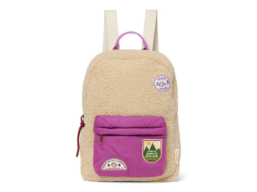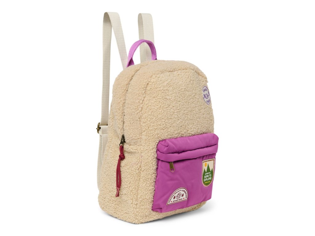 STUDIO NOOS - Teddy Midi BACKPACK - batôžtek s predným vreckom | Ecru/Purple